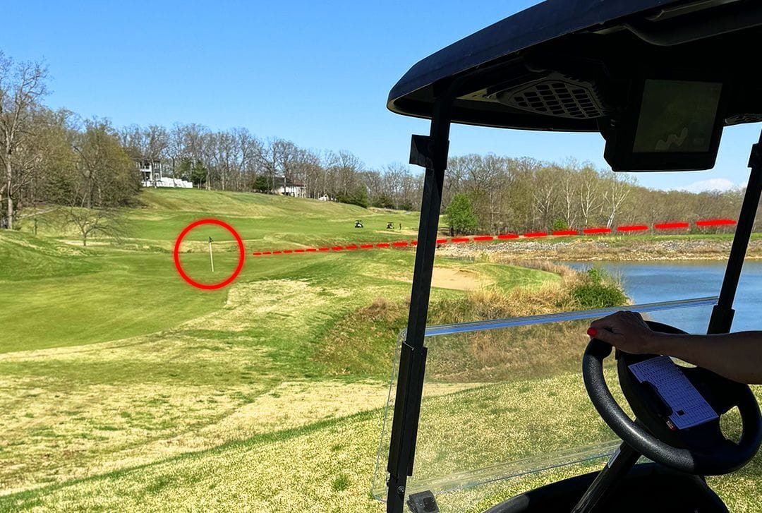 Maintain steady hands and keep the cup/flagstick visible at all times. Keep the cup/flagstick in frame as you approach the green, ensuring the cup remains visible.